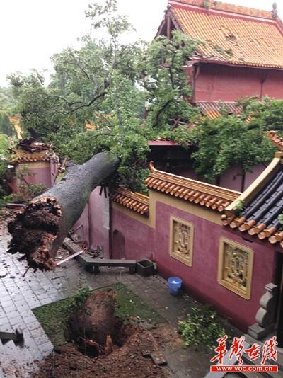 长沙大雪导致麓山寺前150年的古枫香树连根倒伏,所幸未伤到人。景区还发现有260年皂荚、260年和130年枫香、130年国槐、110年榔榆、160年细叶青冈共6棵古树被冻断主枝。
