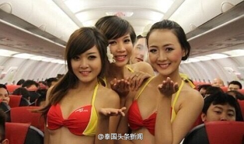 从照片上可以看到,身穿印有“越捷航空”标志红黄色比基尼套装的“空姐”在飞机内外大摆性感造型。这些“空姐”包括来自当地知名模特公司Venus的9位模特,其中不乏被称为越南“内衣女王”的陈氏玉贞(NgocTrinh)。这位越南名模在其“脸书”页面上写道:“刚刚结束为越捷航空做宣传的拍摄活动,整个拍摄用了12个小时,从早上9点到晚上9点。”还有许多空姐自拍的照片也在其列。
