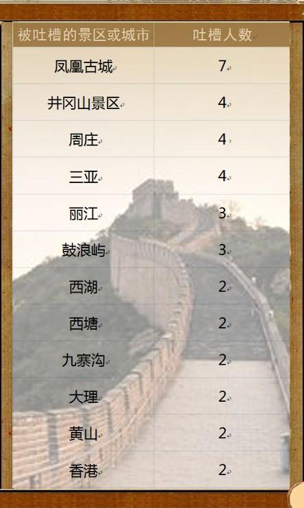 凤凰古城以被吐槽七次高居最想吐槽榜榜首,而这七次吐槽全部来自在凤凰古城随机采访的10名游客中。
