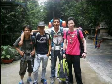 在成都等李静时,另外4名驴友的合影,从左至右依次为蔡金国、小李、李政伟、老吴。(小李供图)