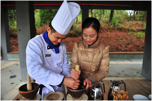 冠豸秘谷总经理陈曾向记者介绍,客家人的根就在中原,客家文化本身就是中原文化的延伸与拓展。而闽西客家元宵节几百年的传统能够代代相传,实属难得。“现在一些大城市过年的年味已经越来越淡。作为酒店,希望能够让前来入住的客人同样可以感受到浓郁的客家民俗风情与体验”。陈曾表示,“今年元宵节期间,酒店的‘客家民俗风情展’,就精心挑选了几十张最具代表性的闽西客家元宵节传统风俗及酒店元宵节活动“打擂茶”、“打糍耙”的精美照片及客家风土人情的视频。希望通过这样的形式向海内外游客呈现客家传统民俗风情与客家人的勤劳、纯朴、热情、善良。”