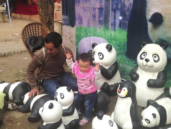 复合材料制成的仿真熊猫,在景区展出。却引来网友质疑,称里面全是假熊猫,让周末带孩子前往观看的家长直呼“上当”。