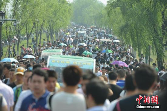 “五一”如期而至,“堵”成为避不开的关键词,“挤”也成为了浙江杭州西湖黄金周的常态。记者1日从杭州西湖风景名胜区管委会获悉,西湖景区当日共迎客58.59万人次,相比去年人次有所减少,而西湖的断桥依然热闹非凡,黑压压的人群将断桥变身“人桥”。