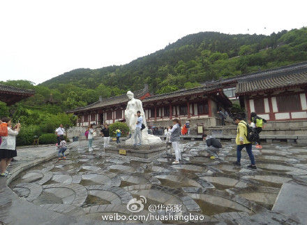 五一小长假,华清池景区里贵妃沐浴雕塑无疑是最吸引游客的地方,不少游客都喜欢站到贵妃跟前合影,但有些游客会有攀爬行为,还有些游客摸着贵妃的大腿留影。还有不少游客脱了鞋子袜子在贵妃脚底下开始洗脚,一旁的工作人员根本制止不过来。