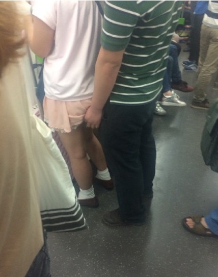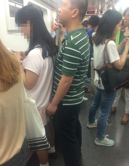昨日,地铁2号线上,一男子伸出“咸猪手”骚扰身前的女孩,被一名乘客拍照后阻止。