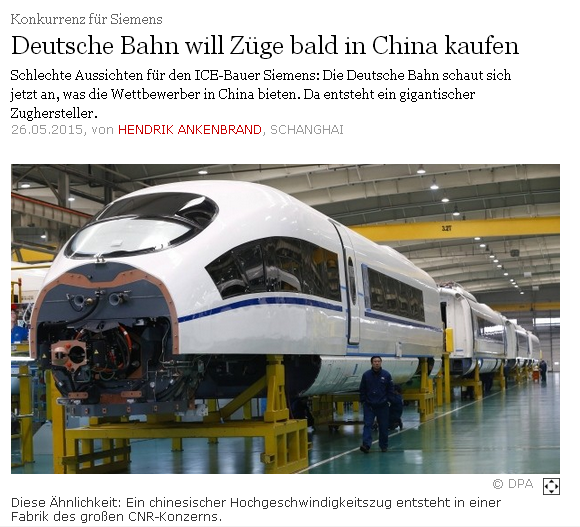 法兰克福汇报相关报道《德国将在中国采购列车》