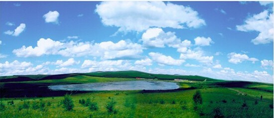 “原上碧草似蓝天,一轮明月镶其间。最忆当年萨仁淖,总有狍鹿饮湖边。”看到这样美的诗句您是否有怦然心动的感觉呢?没错此诗所形容的就是景区景点之一的月亮湖。月亮湖因其形状而得名,登高俯瞰一原绿草恰似一角蓝天,湖型如月,镶嵌在绿色的草原上,有如蔚蓝的天空上升起了一轮皎洁的明月,而草原上开的正旺的金莲花,正是那万点繁星,与其交相辉映,构成一幅美轮美奂的画卷。