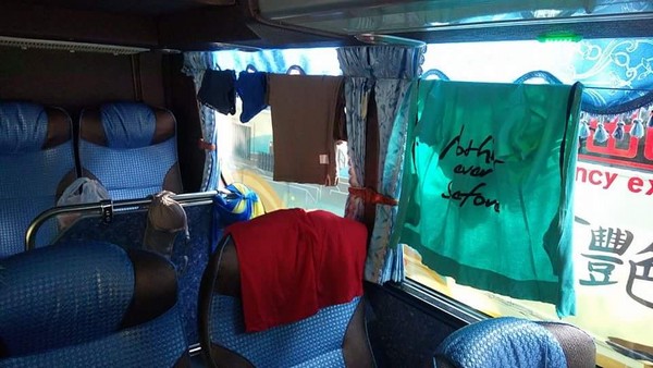 照片发在上网后随即引发热议,许多网友纷纷留言,"太没水准了吧!"、"行动晒衣场?"、"好没卫生喔。"。还有网友说,"司机大哥辛苦了,载完他们还要把整台车重新消毒一次。"