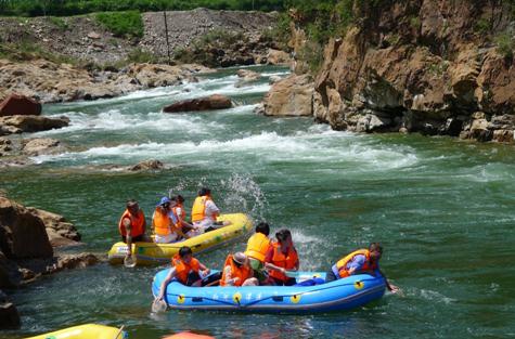 兴隆红河峡谷漂流系燕山余脉、地质结构经千万年切割冲刷形成“U”型的峡谷属丹霞地貌,天然形成一道的雕塑美术长廊,素有小”张家界“之称。兴隆红河峡谷漂流全程13.8公里,自然落差80米左右,有飞龙出涧、望佛峰、红石谷、龙腾峡谷、白云瀑布、龙龟潭等天然丽景。在峡谷中泛舟穿石绕壁,凌波逐浪惊险刺激、有惊无险,是漂流运动的天然良港。