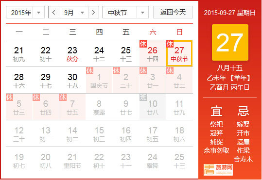 有关部门表示:因为2015年中秋节和国庆节相邻近,如果中秋节在9月28日补假,国庆节后10月10日、11日(周六、日)就都需上班,为避免大家连上9天班,中秋节的补假放在了国庆节一起安排,国庆节后仅10月10日(周六)上班,公民休假总天数并未减少。
