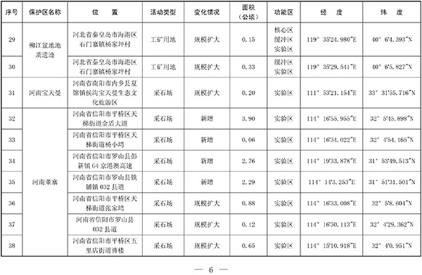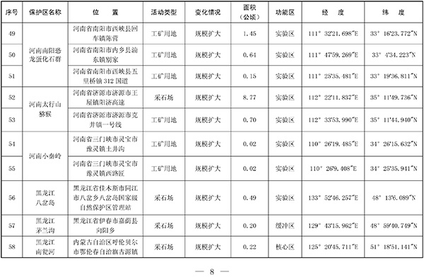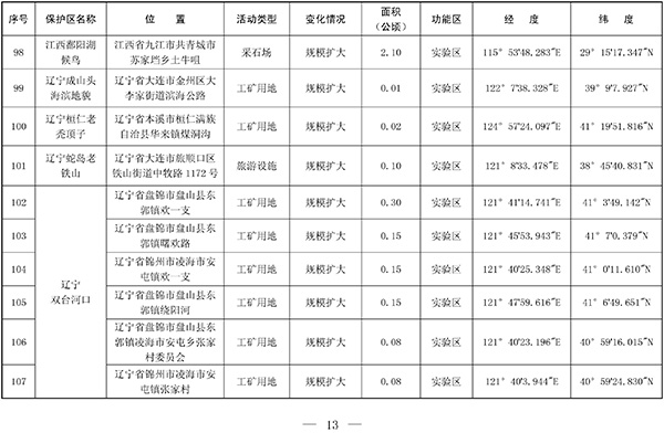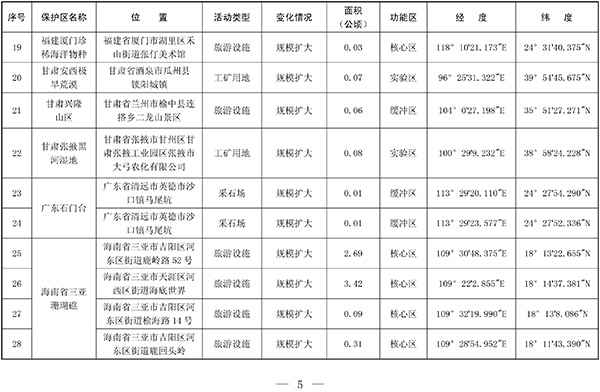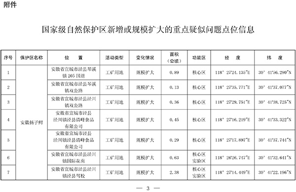 在上述保护区中,安徽扬子鳄和三亚珊瑚礁保护区曾因违法建设问题被通报。
