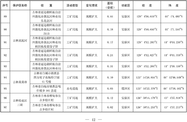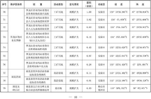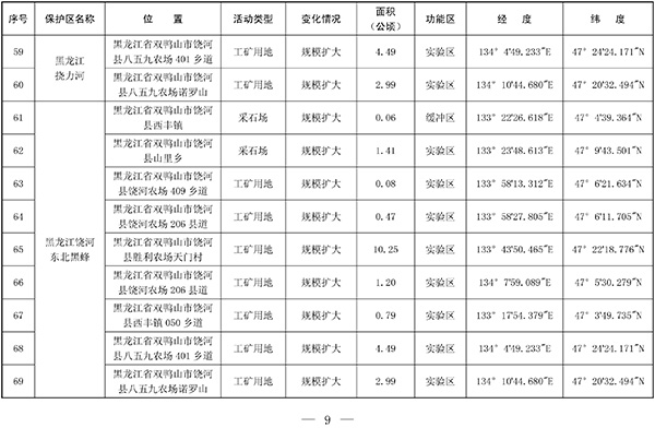 点位最多的为黑龙江饶河东北黑蜂保护区,共有16处疑似问题点位,除两处采石场外,其余均为工矿用地,有15处在保护区最外围的实验区内,有一处采石场位于保护区缓冲区。