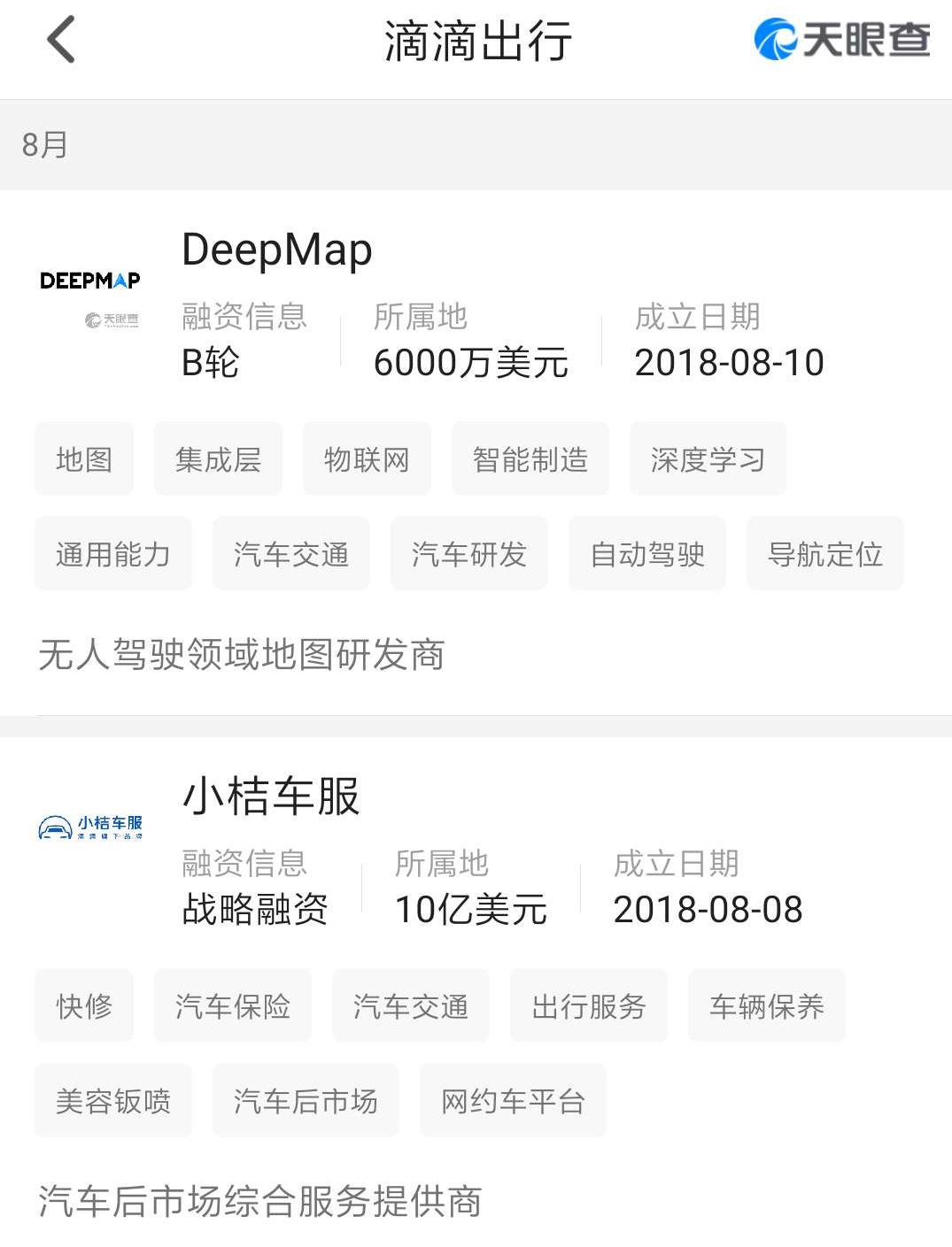 根据天眼查信息,今年滴滴的对外投资出现了聚焦“汽车后市场”的意图,陆续投资了无人驾驶地图、汽车服务、汽车保险等等业务领域。而之前几年,滴滴热衷的,还是不停兼并“共享交通”这一领域内的国内外网约车和共享单车企业。