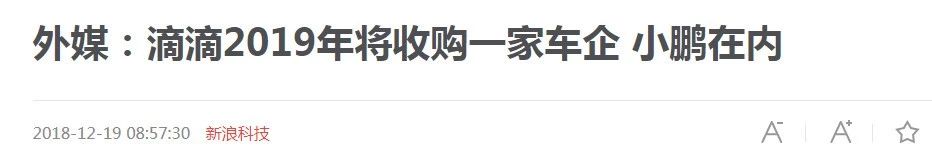 据路透社报道,滴滴出行将于2019年收购一家汽车制造商。根据路透社分析,滴滴出行的潜在收购对象可以排除一些国有汽车厂商,更灵活的汽车初创公司看起来更合适,包括由阿里巴巴资助的小鹏汽车,以及由前宝马和日产汽车高管创立的Future Mobility公司都是滴滴的潜在目标。