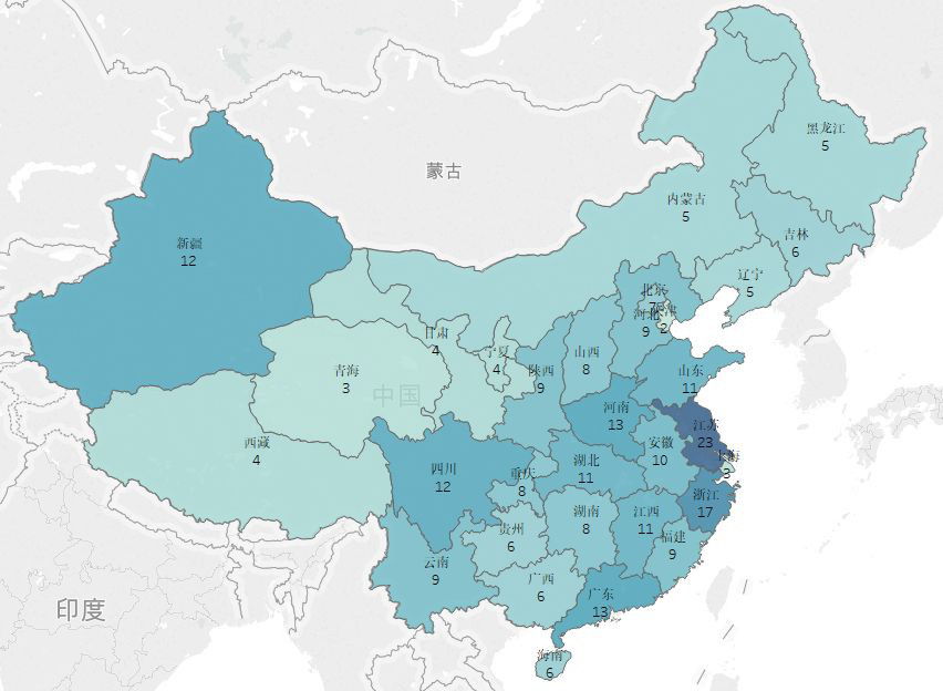国家5A级旅游景区省份分布图