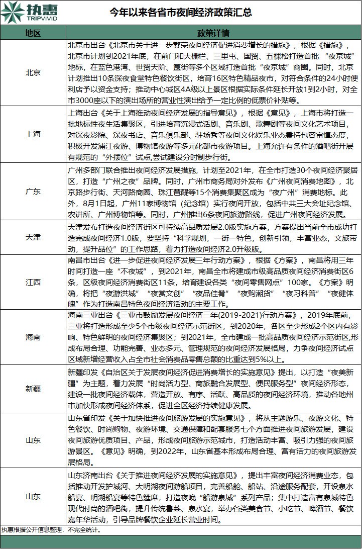 执惠不完全统计显示,国内已出台明确的夜游(夜间)经济相关政策的省市包括新疆、山东及济南市、北京及海淀区、上海、广州、天津和三亚等。