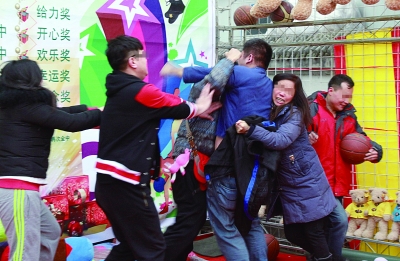 龙潭庙会游艺区,两名游客因游戏奖品大打出手 摄/法制晚报记者 张茉然