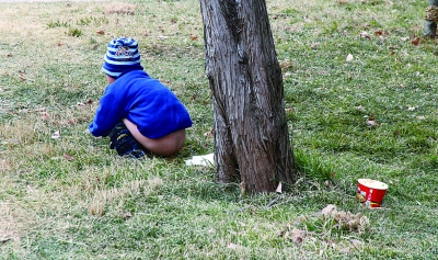 陶然亭公园厂甸庙会,一些家长让孩子在草坪上大小便 摄/法制晚报记者 张茉然