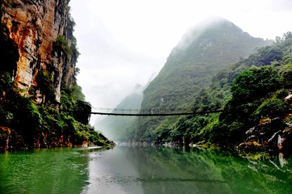 关岭大峡谷,位于安顺以西80公里,关岭县境内,距黄果树风景区30公里,为省级风景名胜区。大峡谷属北盘江流域,长80余公里,有“地球裂缝”之称。谷底激浪翻滚,吼声如雷,两岸刀劈斧削,险峻雄奇,瀑布四挂,树草丛生,窄处望天一线,宽处相呼不应,峡谷中有古铁桥、古岩画、摩崖石刻及古生物化石群等景观多处、极富旅游价值和科研价值,是探险、科考,访古寻幽的最佳去处。