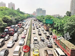 当车缓行到内环高滩岩到上桥的U字形长上下坡路段时,她震惊了:双向六车道上,车辆绵延两三公里,纹丝不动,俨然一座大停车场!