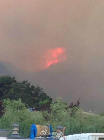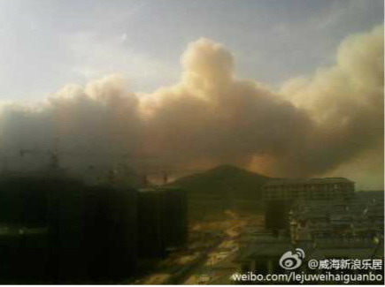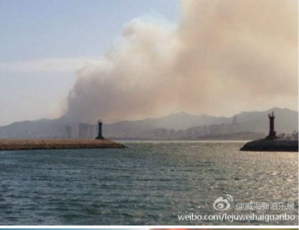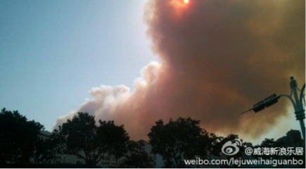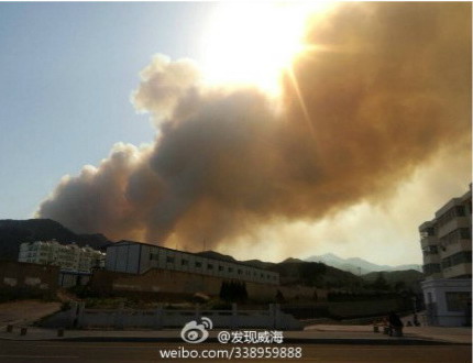 威海仙姑顶景区大火浓烟漫全城 烟威两地2000余人扑救