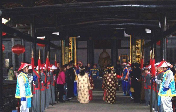 往前走便可看到一排排的监舍、宿舍,可以想象到昔日贡院的鼎盛。在阆中贡院还可以进一步体会科举制度的程序,每逢周末,贡院内会有身着古服的工作人员演示,向我们展示当年科举考试的情景。