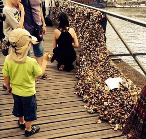 由于挂锁的人太多,而桥上空间有限,为了能把自己的锁放上去,很多人开始变得异常疯狂,他们往往要冒着危险爬到更高的地方,或者探身到水面上才能完成“任务”。这座桥上风景极佳,除了情侣外,很多艺术家也来此写生。除巴黎外,很多西欧国家都有类似的“爱情铁锁桥”。