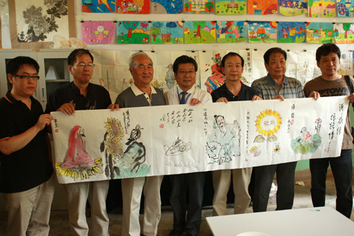 7月19日,中国新闻漫画研究会、中国美术家协会六名漫画家相聚甘肃武威民勤县敬业公司葵花原料基地,向第三届向日葵文化旅游节承办单位甘肃敬业农业科技有限公司赠送了有关葵花内容的漫画,并现场六人合作作画“漫漫葵缘丝路情”。