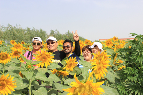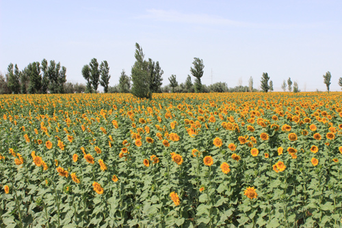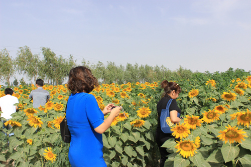 中国新闻漫画研究会秘书长郑华卫在向日葵基地说,“太美了,一望无际的向日葵开遍腾格里沙漠边缘,不可思议。百万亩葵花层层叠叠,色彩叠加,带给大家巨大的心灵震撼远甚青海等地的油菜花。”