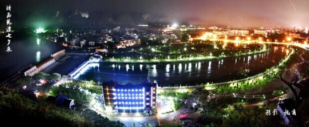 幕影、水瀑、灯影霓虹,白日里供阖家消暑戏水的天然泳池,夜晚摇身一变成为了牛郎织女的相会之地,当清澈透亮的山歌对唱扬空而起,当瀑布上的蝴蝶几欲扑水而出,当无数情侣亲手放下为爱祝祷的河灯,星星点点将龙潭化为天上的银河,这浪漫一夜将为爱而隽永。