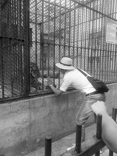 “他弯着腰,脸紧贴虎笼,不断用手拍着铁丝网挑逗老虎。”李女士说,虎笼里有一只看上去不太大的老虎,性情比较温顺,任凭男子挑逗吸引,也没有发怒,只是过来用爪子隔着铁丝网挠了两下。