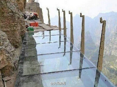 河北建悬空1900米玻璃栈道 游客“惊声尖叫”不敢前行