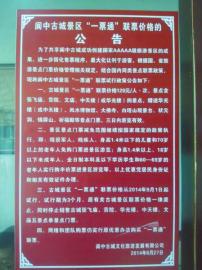 阆中古城景区张贴的有关“一票通”联票价格公告。