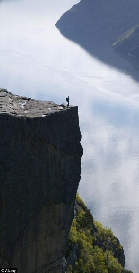 图为布道坛岩的全景图,由此可以看到布道坛岩高耸陡峭,悬崖下便是万丈深渊,在这几百米的高崖上一旦发生不测后果将不堪设想。