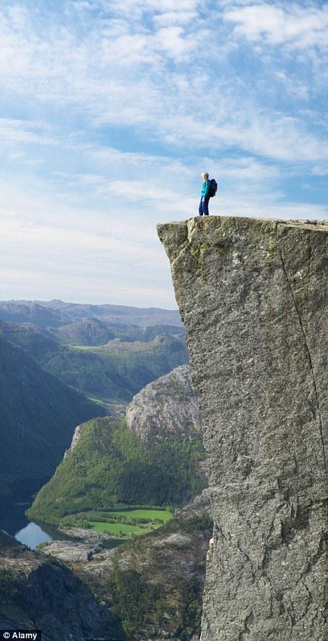 图为布道坛岩。管理者建议游客们最好不要太靠近悬崖边缘,但这似乎不能阻止那些寻找拍摄最佳照片机会的人。