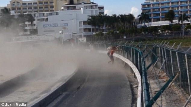 圣马丁岛游客观赏飞机短距离起飞被吹飞