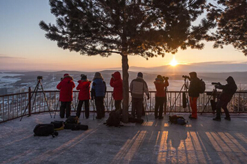抚远县位于祖国陆地最东端,素有“华夏东极”之美誉,摄影师们先后参观了抚远县城市规划展示馆、抚远火车站、东极宝塔、东极广场,眺望一江之隔的俄罗斯远东第一大城市哈巴罗夫斯克;探访了乌苏镇东方第一哨;在抚远的南山拍摄日出,俯瞰整个城镇;在松花江畔感受冬捕大丰收的喜悦、体验白桦林中马拉爬犁的速度,拜访了赫哲族人家,走进了抚远鱼市,欣赏鱼皮制作的各种手工艺品等;四天的时间不长,但东极所展现的魅力,让他们不禁一次又一次按下快门,捕捉到冬日童话里那些最美丽的瞬间,每一位摄影师对抚远都留下了深刻印象。本次活动感谢抚远县文广新局的大力支持和周到细心安排,每一位摄影师都拍到了满意作品,满载而归,不虚此行,相信抚远的美丽风貌也即将呈现在全国人民眼前。