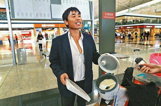 在机场坚持了大半天的吴加永饥肠辘辘,喝了很多凉水的他只能在机场无助地睡觉,身心具乏。突然,吴加永想到了自己在工地打工时买的电饭煲里还有米,加上卫生间的凉水,吴加永向机场的工作人员寻求帮助,希望能够在机场煮饭填饱肚子。吴加永告诉记者,他一次要煮很多米饭,“一下煮很多,还不舍得吃,中午都不吃饭,不知道什么时候能够回家,晚上吃点剩米饭就赶紧睡觉。”然而吴加永不知道,他在机场煮饭的举动引起了机场和当地媒体的关注,于是便有了网上传出的山东籍男子滞留香港机场煮米饭的消息。