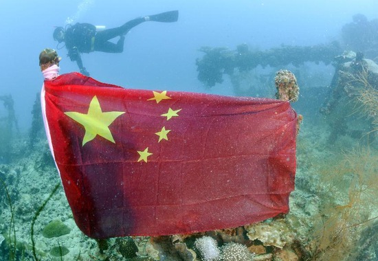 据日本媒体报道,当地时间3月21日,位于帕劳的科罗尔岛西南海域水深40米处发现一艘旧日本海军的沉船“石廊”号供油舰,令人感到奇怪的是“石廊”号上插有一面中国国旗。
