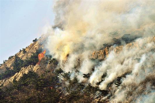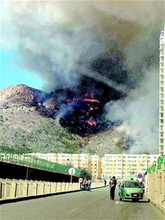 22日下午2时左右,辽宁大连市金州开发区大黑山南侧突发山火,整个山坡被大火覆盖,浓烟在数十公里外都能看到。事发后,当地消防派出300多名官兵赶到现场扑救。