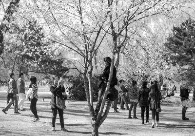 昨天,有网友爆料,玉渊潭公园赏樱花的游客出现爬树、扳枝等不文明现象。公园管理人员称,这种不文明现象不仅妨碍了其他游客正常观赏,也可能造成樱花树倾斜,花朵过早凋谢。