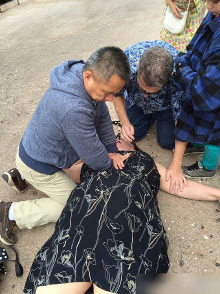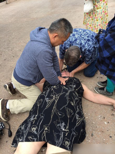 微博用户@唐神医3月21日发布微博说,“在圣地亚哥海洋公园游玩时,遇到一个美国游客突发心跳骤停,倒在离我约十米的地方,一个人坚持胸外按压约十多分钟,等到除颤仪到位后成功将其复苏!海洋公园管理人员非常感谢,送了一顿可以单独观看鲸鱼演出的自助大餐,弥补了没看成表演的遗憾!”图为唐子人医生为倒地游客坚持胸外按压CPR(心肺复苏术)约十分钟。