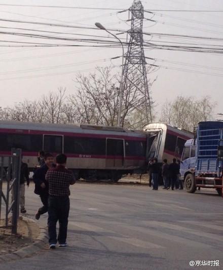 北京调试地铁列车冲出路轨横穿马路 司机被困2小时