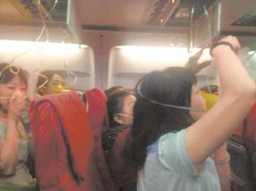 28日凌晨,泰国普吉直飞成都的OX682次航班突然颠簸,乘客们纷纷戴上氧气罩。(图据网络)