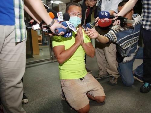 吕忠吉在律师陪同下在镜头前下跪、双手合十致歉,表示心情“千头万绪”,但会负起责任。