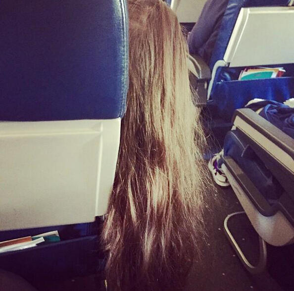 姑娘的及腰长发也遭到后排乘客的吐槽。