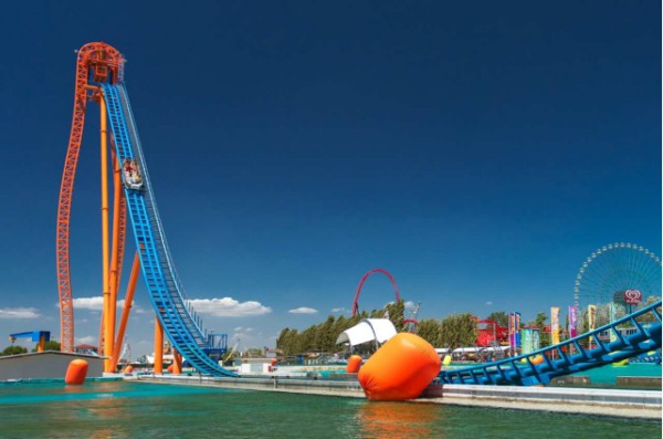 澜沧江是流经西双版纳最大河流,以其水流落差大、流速快而著称——“澜沧飞渡”即得名于此。说澜沧飞渡是唯一真正的水上过山车,是因为它非同于一般只是将轨道架设在水面之上所谓的“水上”或者简单的激流勇进,万达所引进的这款“澜沧飞渡”是首创急速过山车与激流勇进的结合。放眼全世界,这样的过山车项目仅此一例,那么,让我们看看澜沧飞渡究竟有哪些非同小可之处吧!