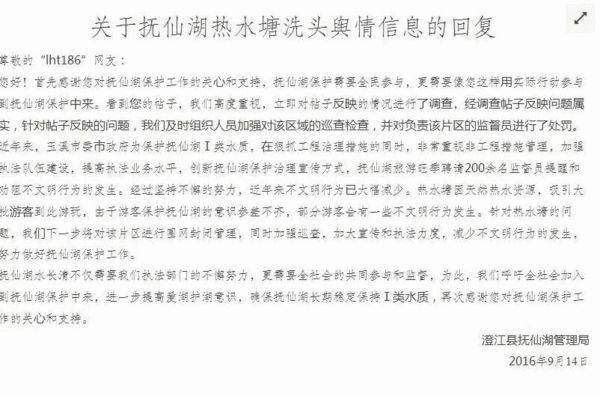 云南玉溪抚仙湖是国家一类饮用水源地,为保护抚仙湖,当地兴建围栏,禁止人进入,但部分围栏被人切断。12日,网曝一群民众在抚仙湖中洗澡,并肆无忌惮地用洗发水洗头。