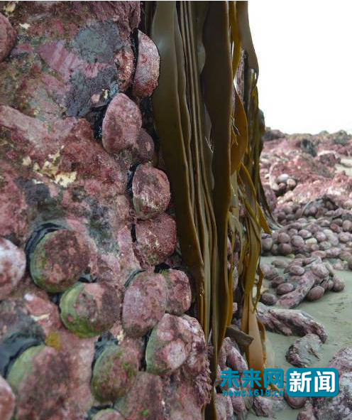 灾区人民在海边捡鲍鱼。 图片来自微博