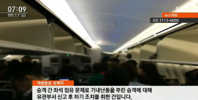 报道称,A某在19日晚8时从仁川国际机场飞往香港的大韩航空航班上,未按其预订的座位乘坐,与随后登机的韩国乘客B某发生争执,并因辱骂乘务员等造成骚乱而接受调查,大韩航空方面对已在跑道的航班采取返航措施,将A某移交给了当地警察。